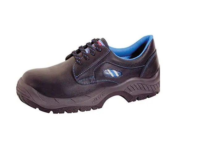 La variedad de diseños de los zapatos de seguridad modernos no podía pensarse hace algunos años atrás. Hoy en día, tienden a confundirse con las zapatillas de deporte dado su diseño ligero y de talle bajo. Por ejemplo, apenas ver a estos zapatos, su revestimiento de piel natural y su gruesa suela captan la atención con un bonito modelo en color negro y detalles en azul claro en su cosido, cordones, laterales y forro interno.